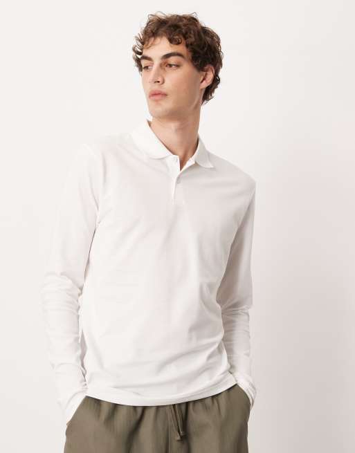 Polo blanco de manga larga de piqué Essentials de ASOS DESIGN