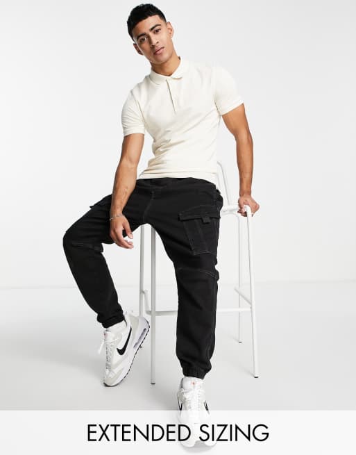 Polo blanco hueso ajustado de punto de ASOS DESIGN