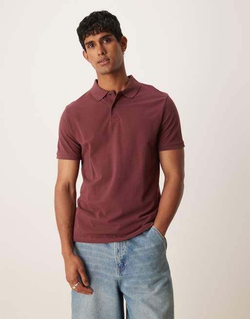 Polo burdeos básico de corte estándar de piqué Essentials de ASOS DESIGN