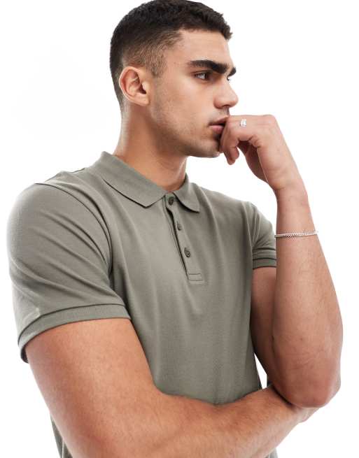 Polo caqui de piqué de ASOS DESIGN
