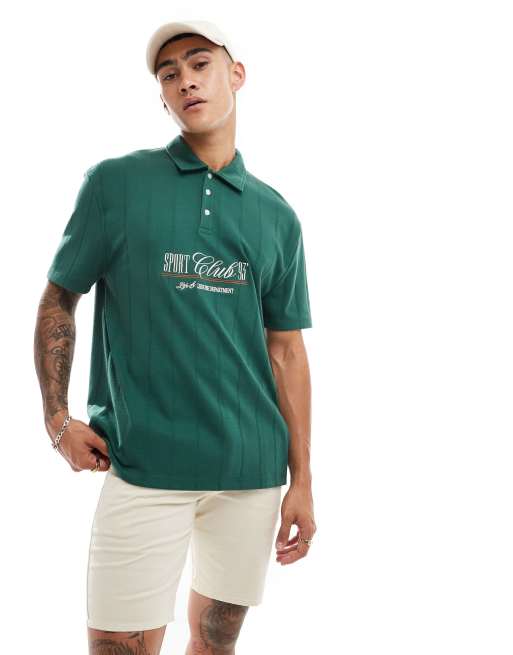 Polo caqui holgado con estampado de texto en el pecho de ASOS DESIGN