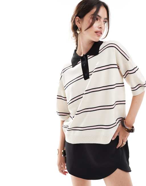 Polo color crema a rayas extragrande de punto de ASOS DESIGN