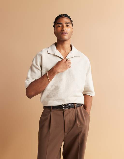 Polo color crema extragrande de tejido texturizado premium de ASOS DESIGN