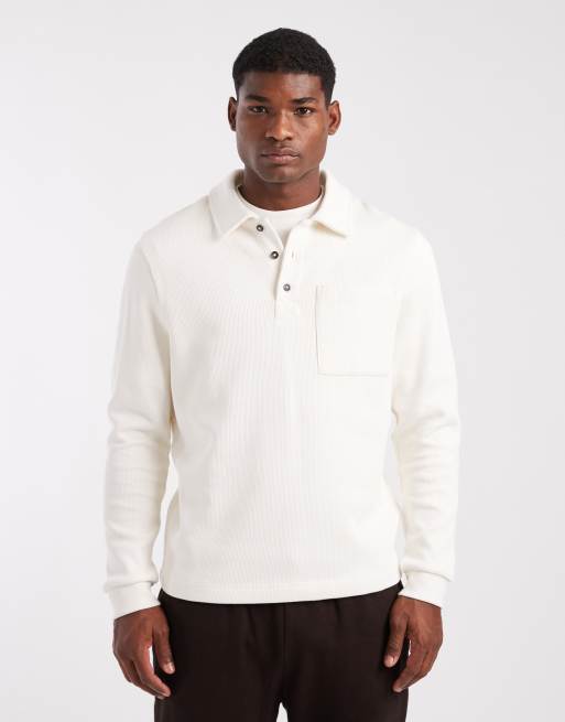 Polo color crudo extragrande con bolsillo y botones de ASOS DESIGN