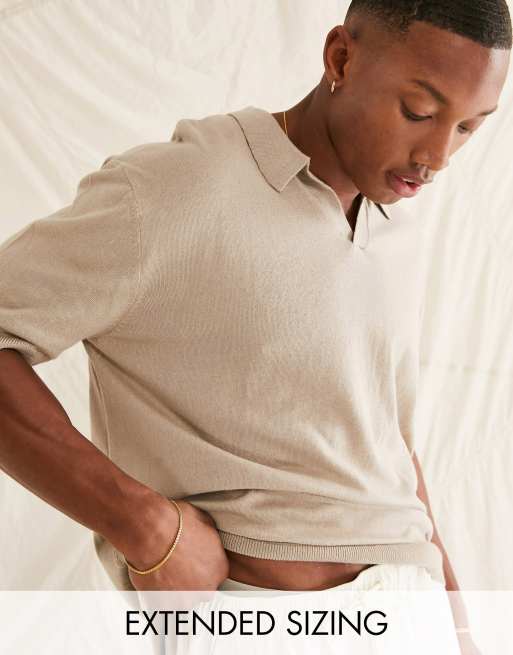 Polo color piedra extragrande con cuello de muesca de punto de ASOS DESIGN.