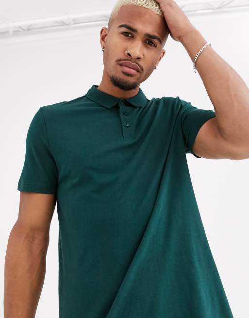 Polo largo verde de punto liso de ASOS DESIGN
