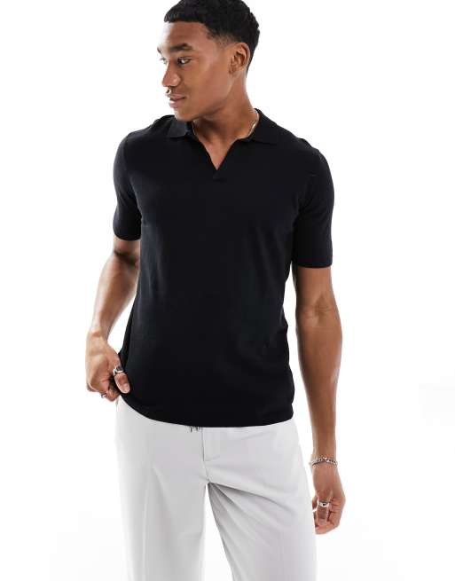 Polo negro extragrande con muesca en el cuello de punto de algodón de ASOS DESIGN