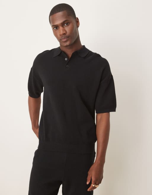 Polo negro holgado de punto ligero de algodón de ASOS DESIGN