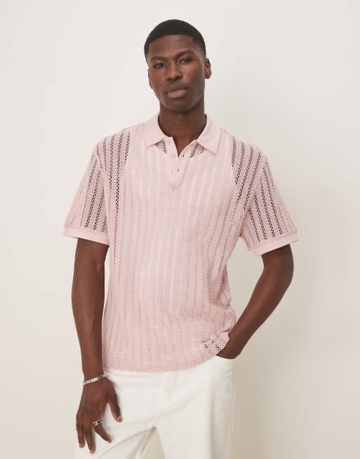 Polo rosa de corte cuadrado extragrande con sisas caídas de croché de ASOS DESIGN .