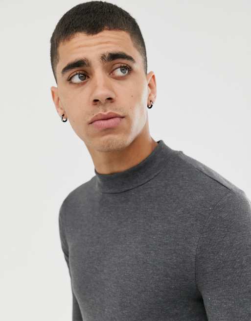 Prenda ajustada de punto de manga larga con cuello alto en antracita marga de ASOS DESIGN