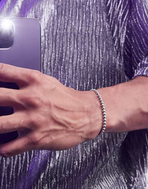 Pulsera ajustable para festivales con cuentas de plata de ley de ASOS DESIGN