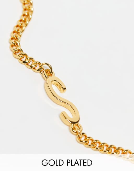 Pulsera con inicial "S" chapada en oro de 14 quilates de ASOS DESIGN
