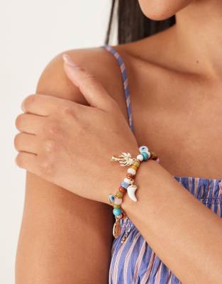 Pulsera dorada con charms y cuentas de ASOS DESIGN