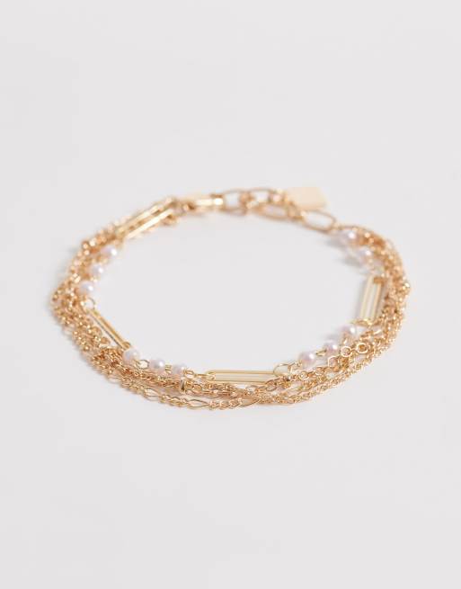Pulsera dorada de varias hileras con detalle de perlas sintéticas de ASOS DESIGN