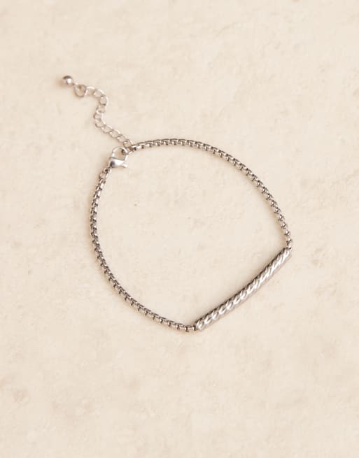 Pulsera plateada de cadena de eslabones cuadrados con adorno de tubo de acero inoxidable resistente al agua de ASOS DESIGN