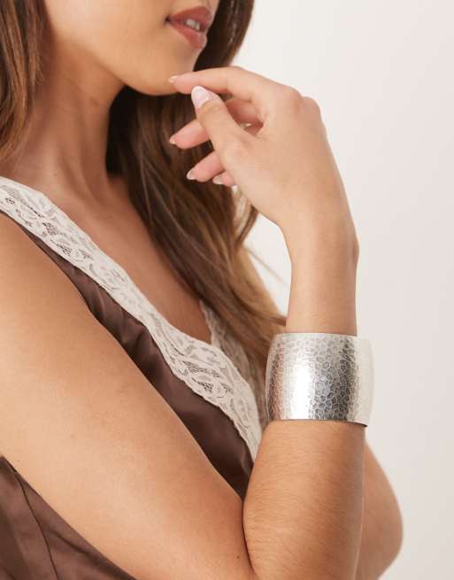 Pulsera rígida plateada grande con diseño repujado de metal de ASOS DESIGN