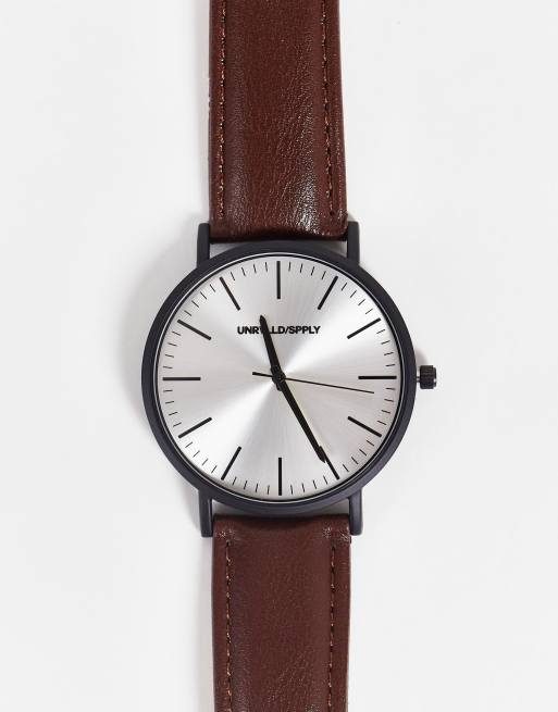 Reloj clásico marrón con caja en negro mate de ASOS DESIGN