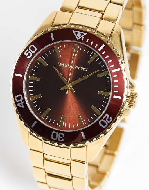 Reloj de pulsera dorado con detalle de esfera marrón de ASOS DESIGN