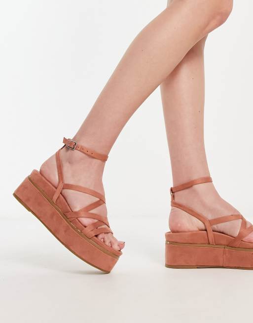 Sandalias beis con diseño de tiras y plataforma plana Taurus de ASOS DESIGN