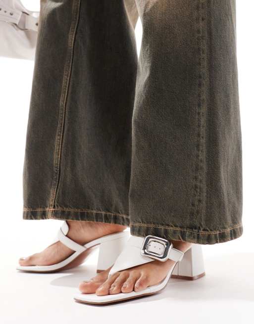 Sandalias blancas de tacón ancho medio con tira en el dedo y detalle de hebilla Hickery de ASOS DESIGN