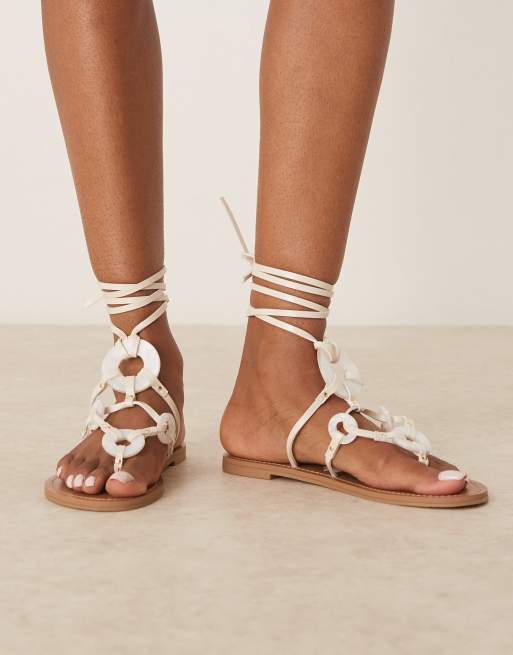 Sandalias blancas planas con diseño anudado a la pierna y ribete Fiona de ASOS DESIGN