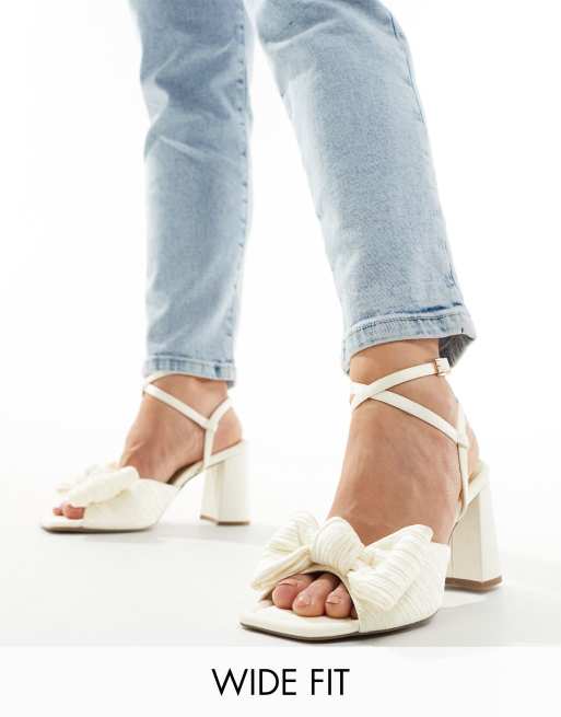 Sandalias blanco marfil de tacón medio de bloque con detalle de lazo Hitched de ASOS DESIGN Wide Fit