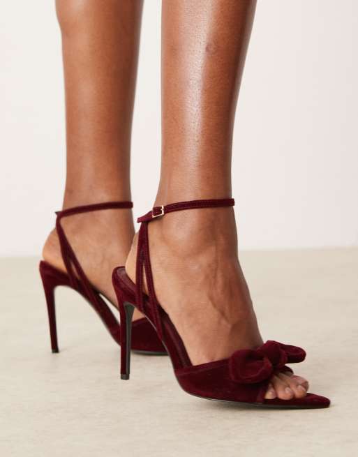 Sandalias burdeos de tacón alto con puntera fina y detalle de lazo Ninja de ASOS DESIGN