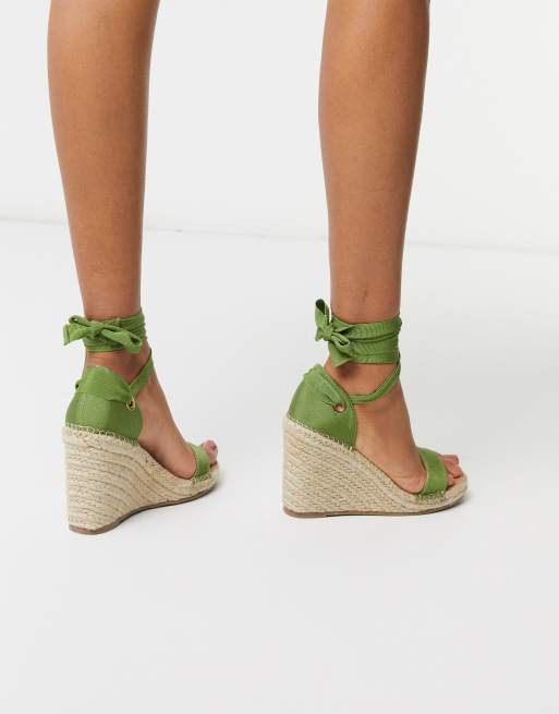 Sandalias con cuña de esparto y diseño anudado en la pierna en caqui Treat de ASOS DESIGN