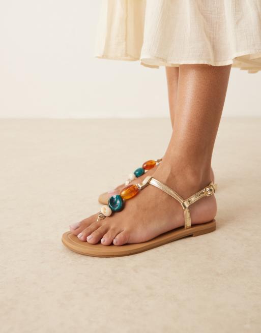 Sandalias de dedo doradas planas con detalle de piedras Feud de ASOS DESIGN