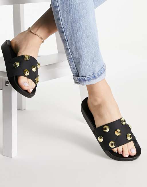 Sandalias negras acolchadas con tachuelas Finery de ASOS DESIGN