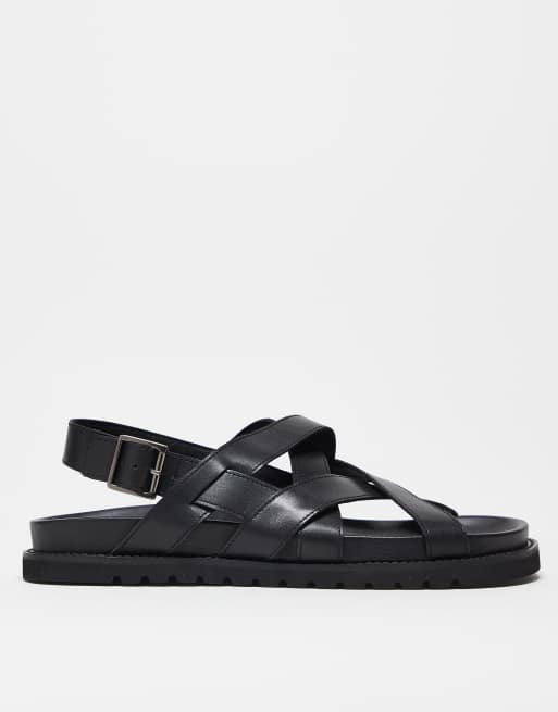 Sandalias negras con diseño de tiras cruzadas de cuero de ASOS DESIGN
