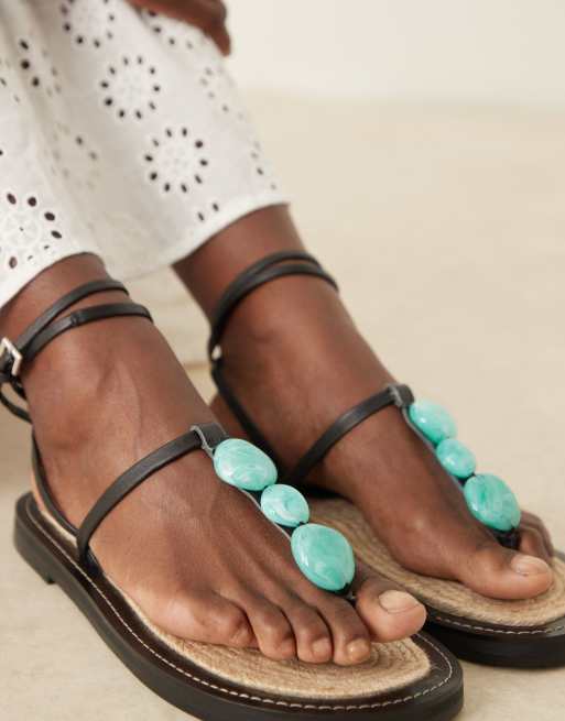Sandalias negras estilo alpargatas con plantilla moldeada y detalles efecto mármol azul de ASOS DESIGN