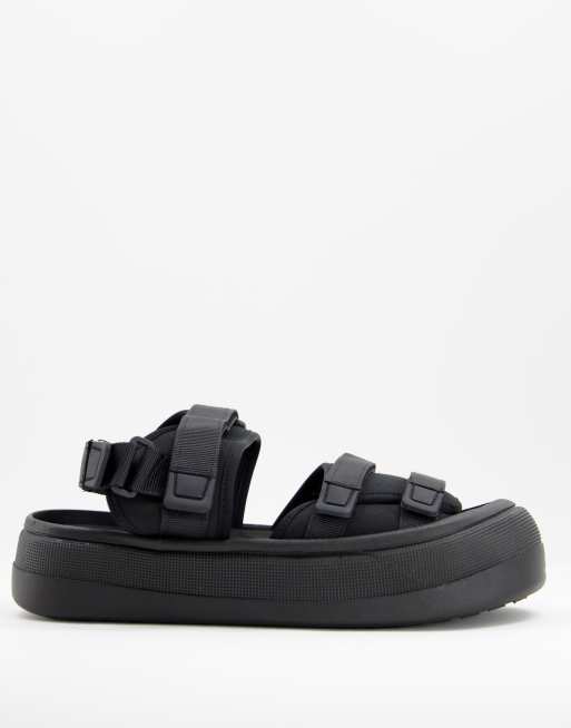 Sandalias negras técnicas con suela gruesa de ASOS DESIGN