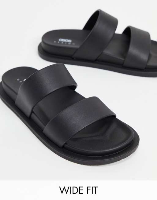 Sandalias planas negras de goma de Friday ASOS DESIGN Wide Fit