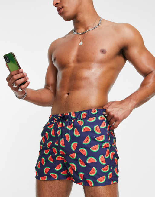 Shorts de baño cortos azul marino con estampado de sandías de ASOS DESIGN