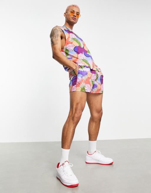 Shorts de baño cortos con estampado de piñas de ASOS DESIGN (parte de un conjunto)