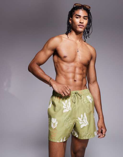 Shorts de baño cortos verdes con estampado de plantas de ASOS DESIGN