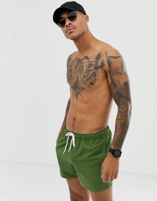 Shorts de baño de largo medio caquis de ASOS DESIGN