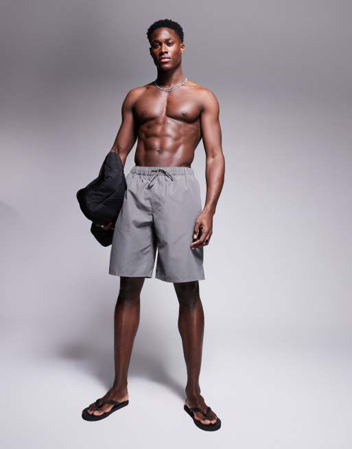 Shorts de baño grises de corte alargado de ASOS DESIGN