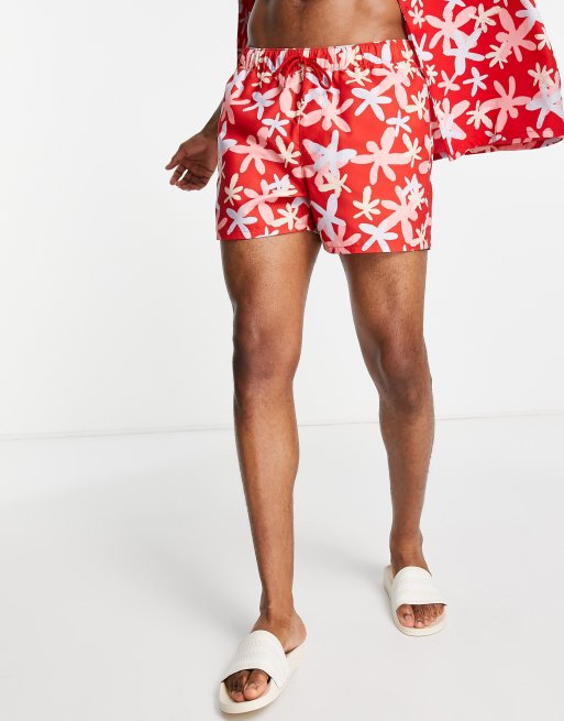 Shorts de baño muy cortos rojos con estampado floral de ASOS DESIGN (parte de un conjunto)