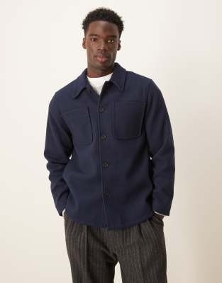 Sobrecamisa azul marino de tejido efecto lana de ASOS DESIGN