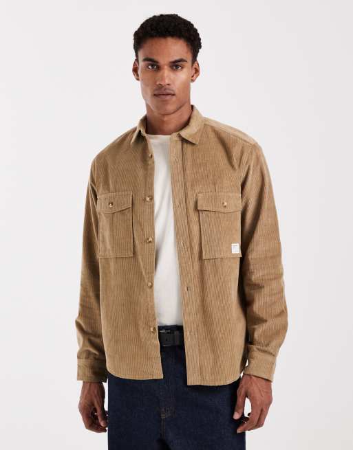 Sobrecamisa beis con parche de pana de ASOS DESIGN