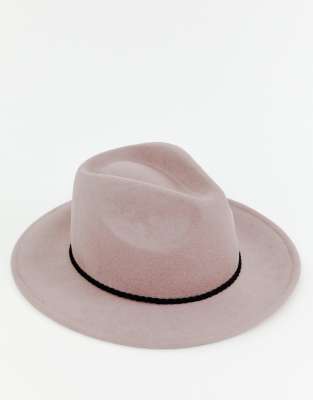 Sombrero fedora de fieltro con ribete trenzado y ajuste de tamaño de ASOS DESIGN