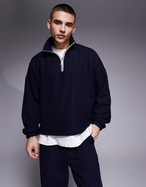 Sudadera azul marino de corte cuadrado extragrande con sisas caídas y media cremallera de tejido grueso de ASOS DESIGN (parte de un conjunto)