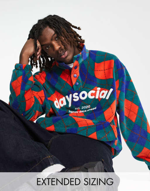 Sudadera azul marino extragrande con cremallera corta y estampado a cuadros ondulados de felpa polar de ASOS Daysocial
