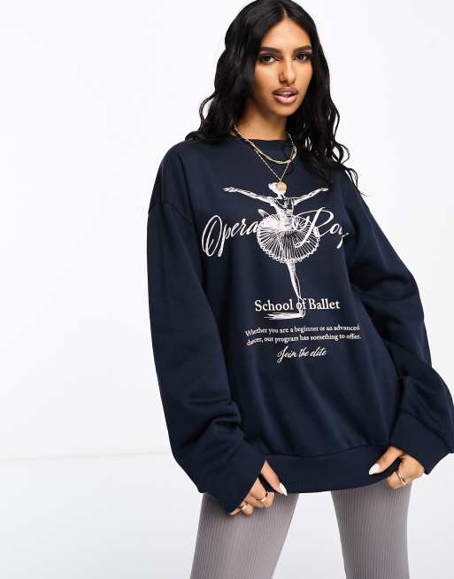 Sudadera azul marino extragrande con estampado gráfico de ballet de ASOS DESIGN