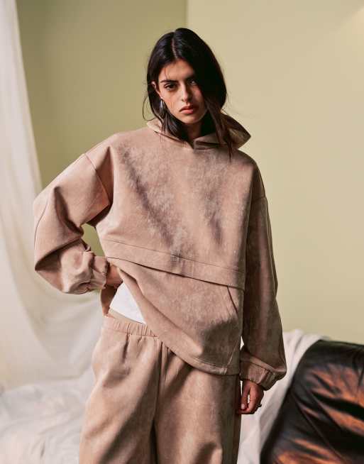 Sudadera beis con capucha de tejido efecto neopreno brillante de ASOS DESIGN (parte de un conjunto)