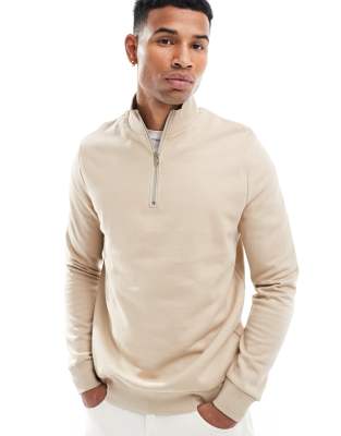 Sudadera beis con cremallera corta de ASOS DESIGN