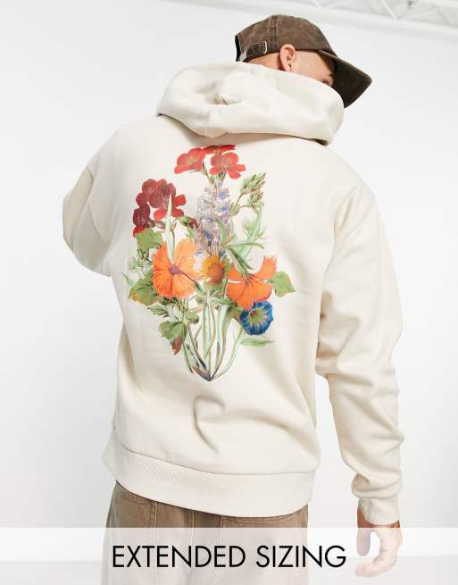 Sudadera beis extragrande con capucha y estampado floral en la espalda de ASOS DESIGN