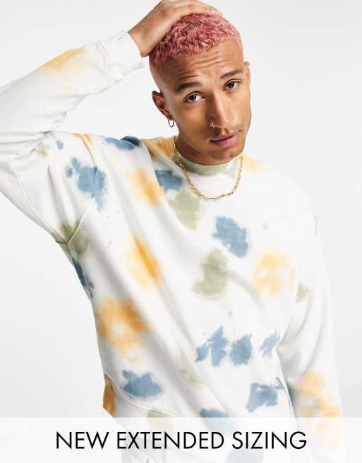 Sudadera beis extragrande con efecto tie dye y estampado de cara sonriente en el codo de ASOS DESIGN